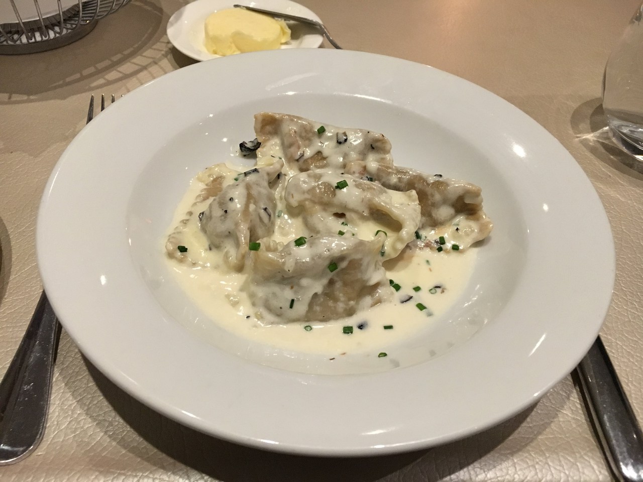 Charlie Palmer Steak는 디너에 방문하였는데 사실 스테이크의 맛은 어디서 즐기든 비슷한 것 같다. 스테이크와 함께 나온 매쉬포테이토는 부드러워 함께 곁들이기에 좋았다. 만두 같은 것을 크림소스와 함께 나온 메뉴의 이름은 기억이 나지 않지만 상당히 맛있었다. 정확히 기억나지는 않지만 아마도 파스타 종류였던 것 같다.