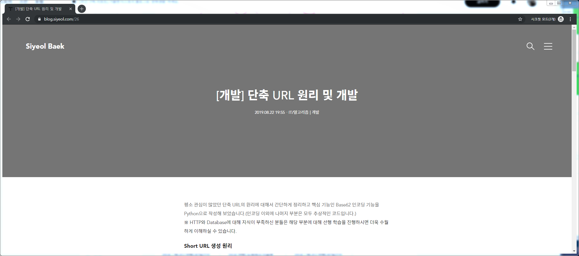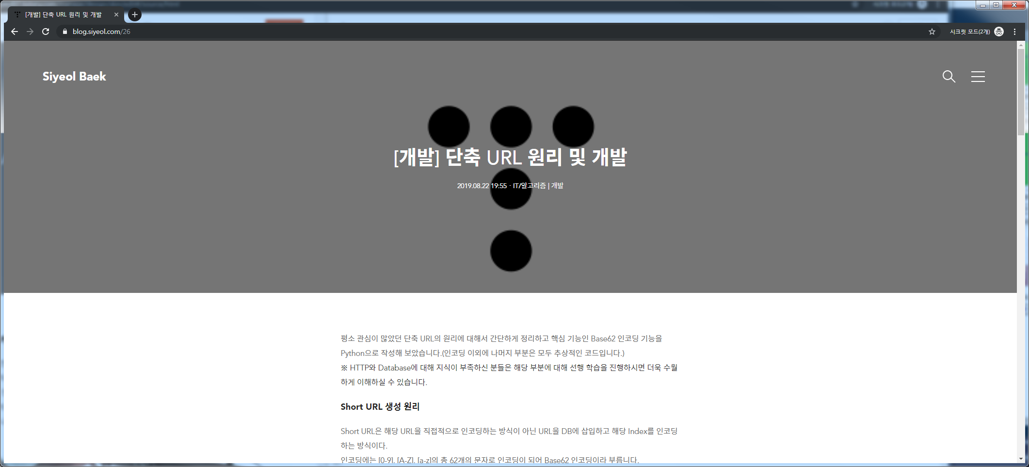 위 단계까지 마무리하고 적용을 하면 대표 이미지가 없는 게시물 페이지 접속 시 커버 이미지 부분이 아래와 같이 회색으로 표시되게 됩니다.