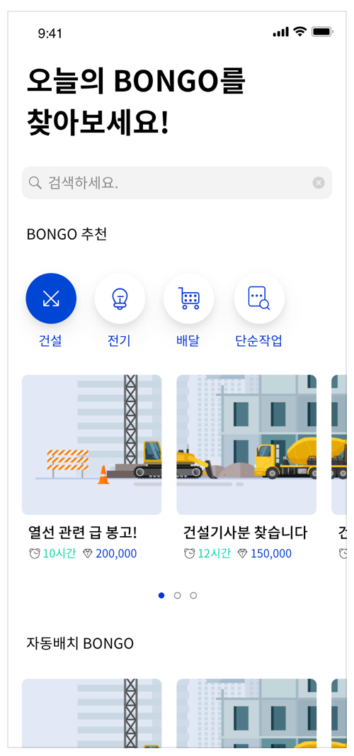 Bongo는 일용직 일거리를 위해 이른 시간부터 인력사무소로 출근하는 제 친구들을 보고 떠올린 아이디어입니다.